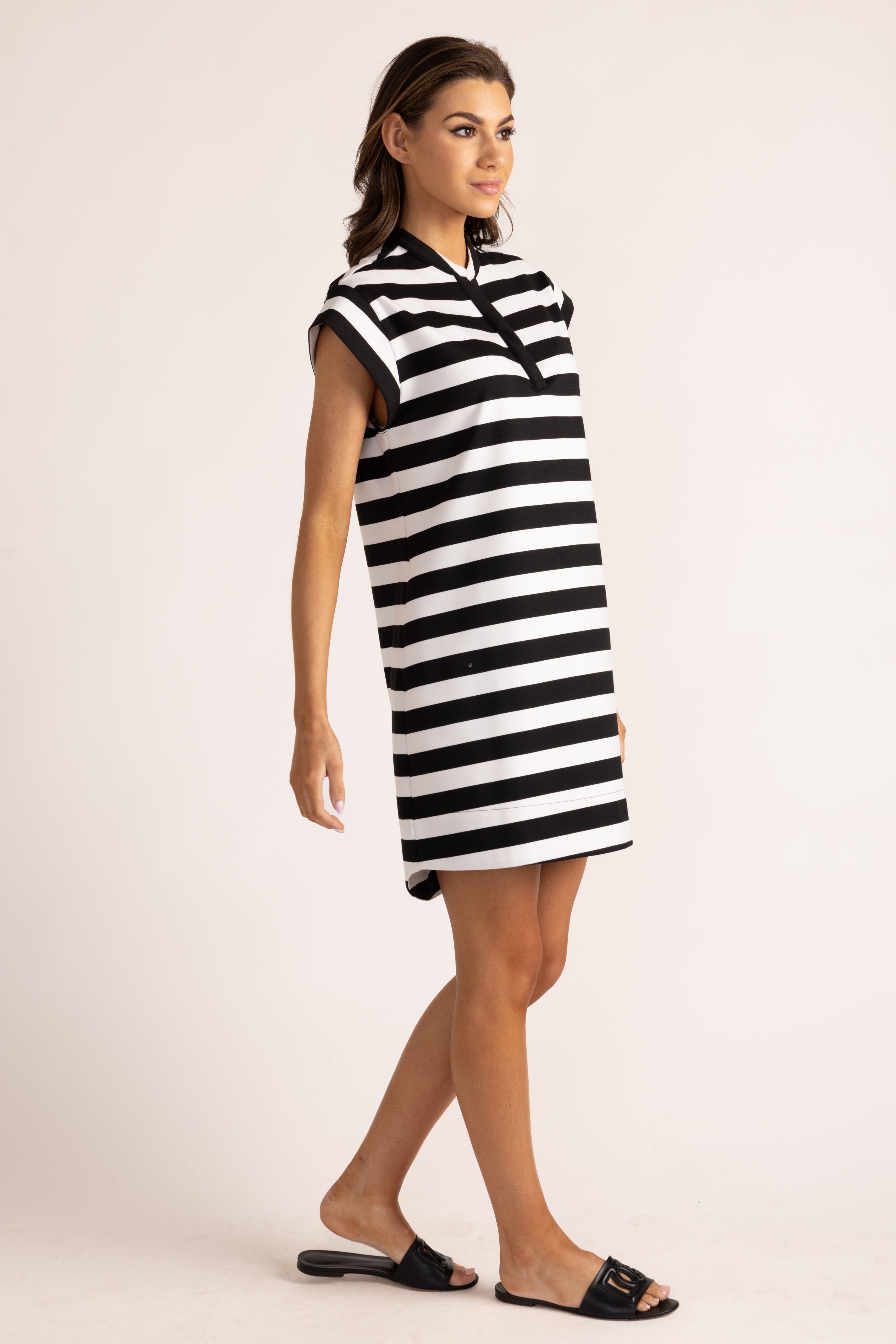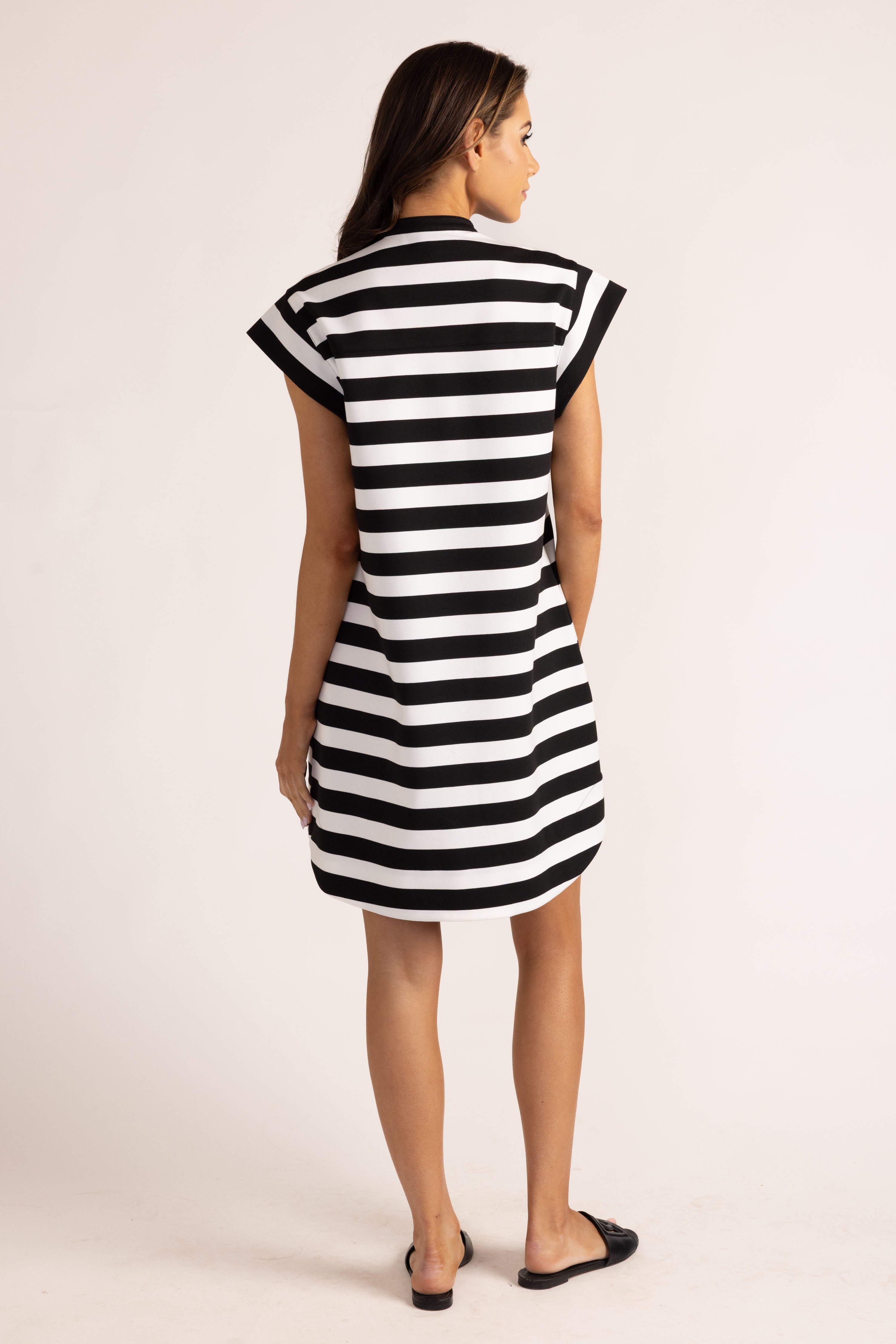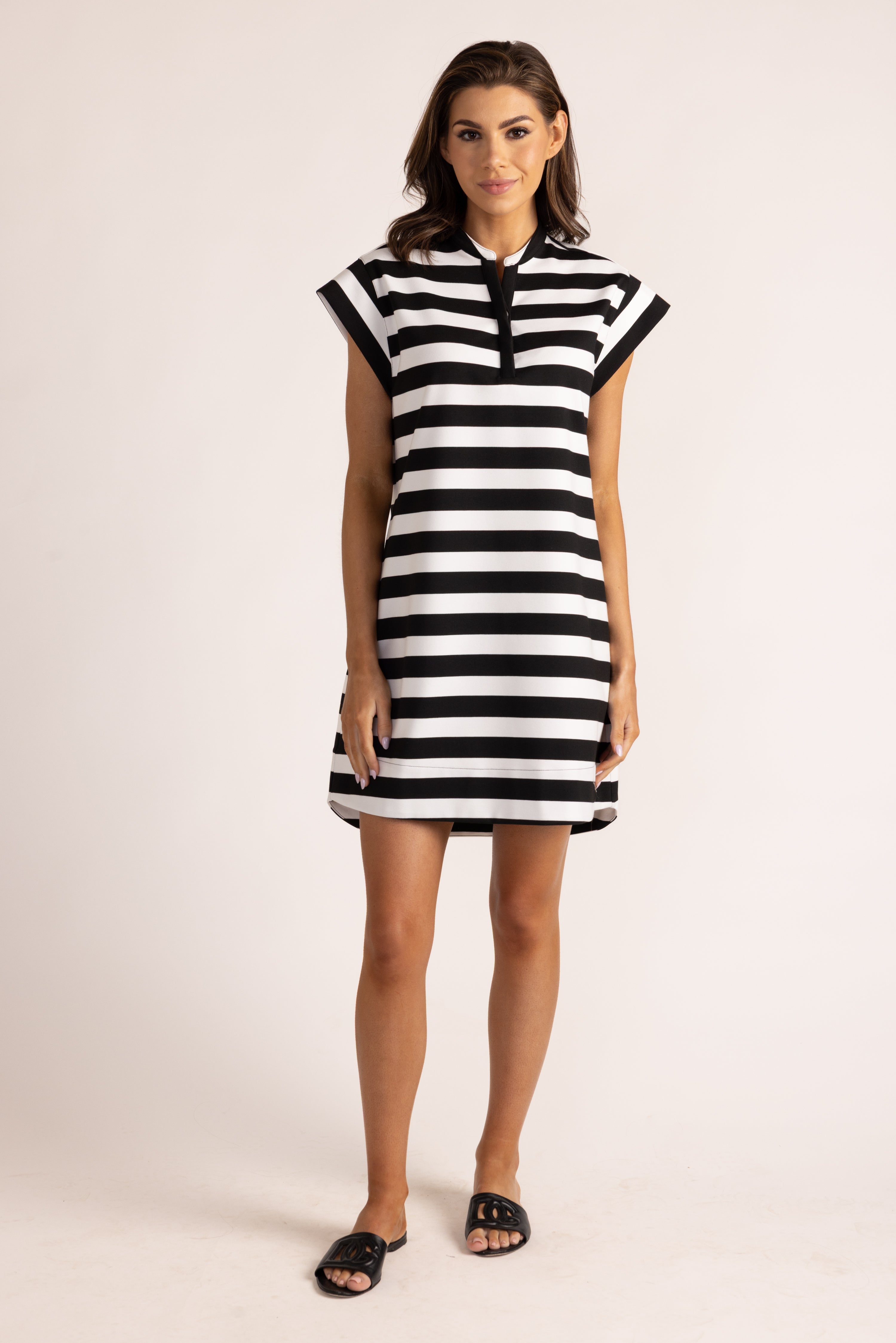 This dress has my name written all over it. Classic black and white stripe with a great cap sleeve. Perfect throw on a go, or dress it up with some fun accessories. OUTFIT on REPEAT!