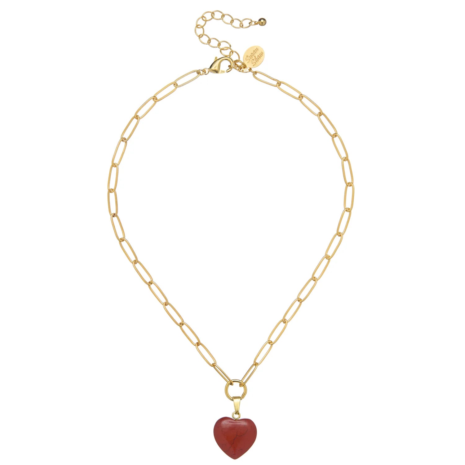Inspired by film and fashion legend Audrey Hepburn, the Audrey Heart Necklace brings just the touch of whimsy you need in your jewelry box. Featuring a genuine stone heart in your choice of 8 colors on our ever-popular paperclip chain, this necklace is lightweight and dainty while still adding a playful pop of color. It's the perfect piece to wear for your next date night or girl's night out!