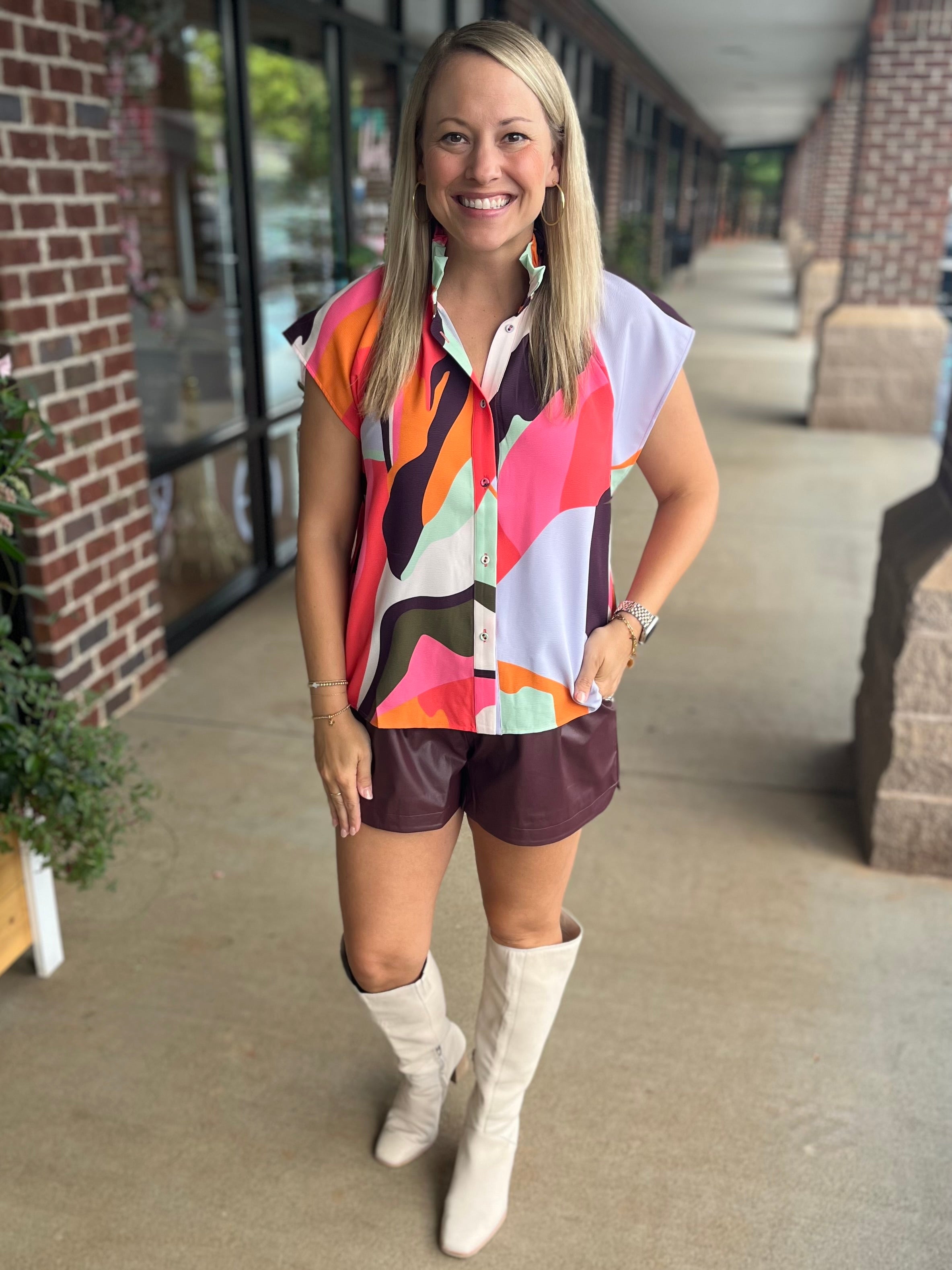 Everyone’s favorite is back! The Billie Blouse features a relaxed fit, feminine ruffle collar, and flattering cap sleeves. Designed to be bra-friendly and easy to wear, it’s the perfect piece to take you from sunny days to crisp, cool evenings.