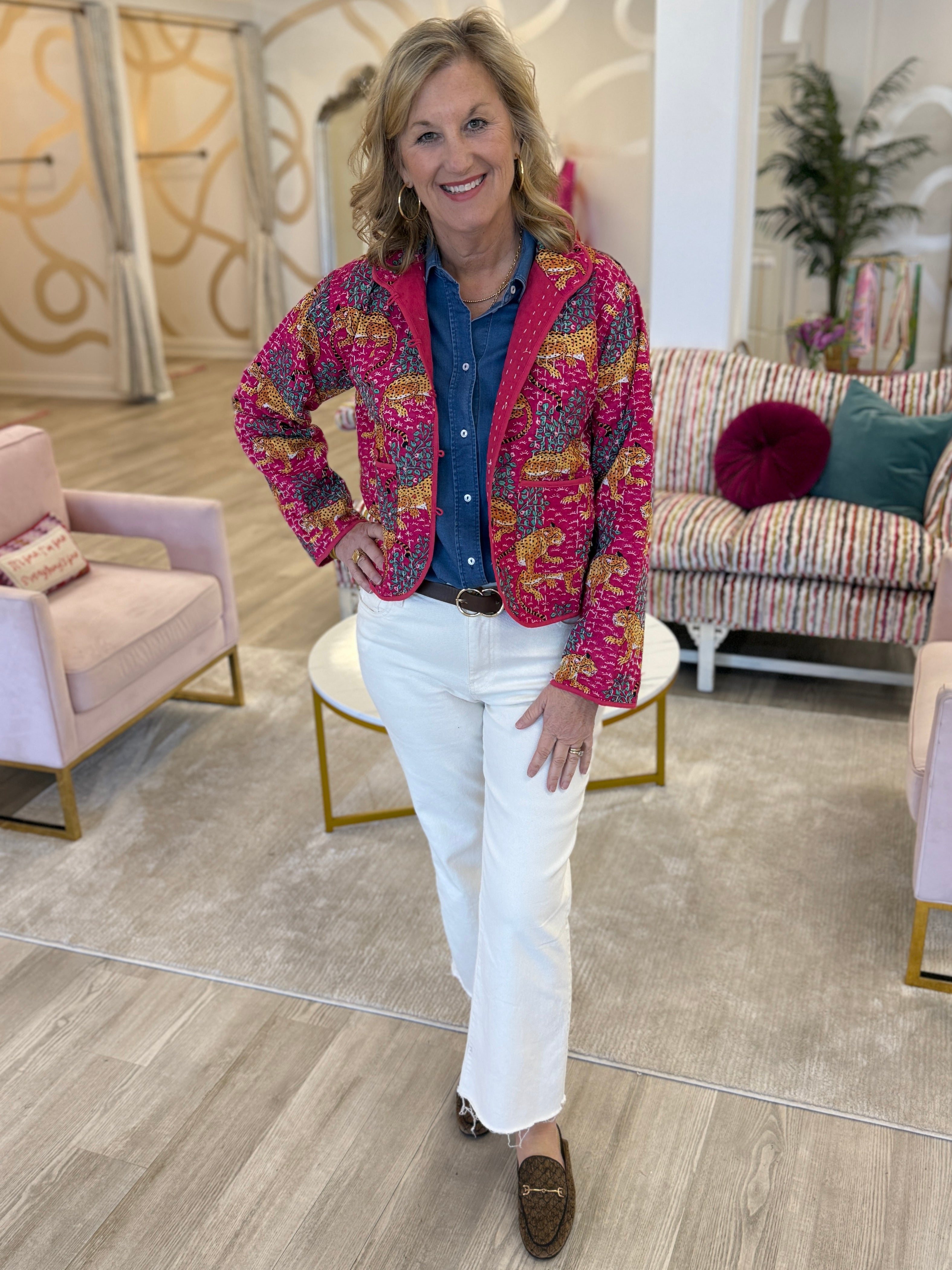 We are so happy to bring Eleanor James to Tulip! Erin has created the perfect throw on and go, lightweight jacket. We love this paired with denim or shorts.