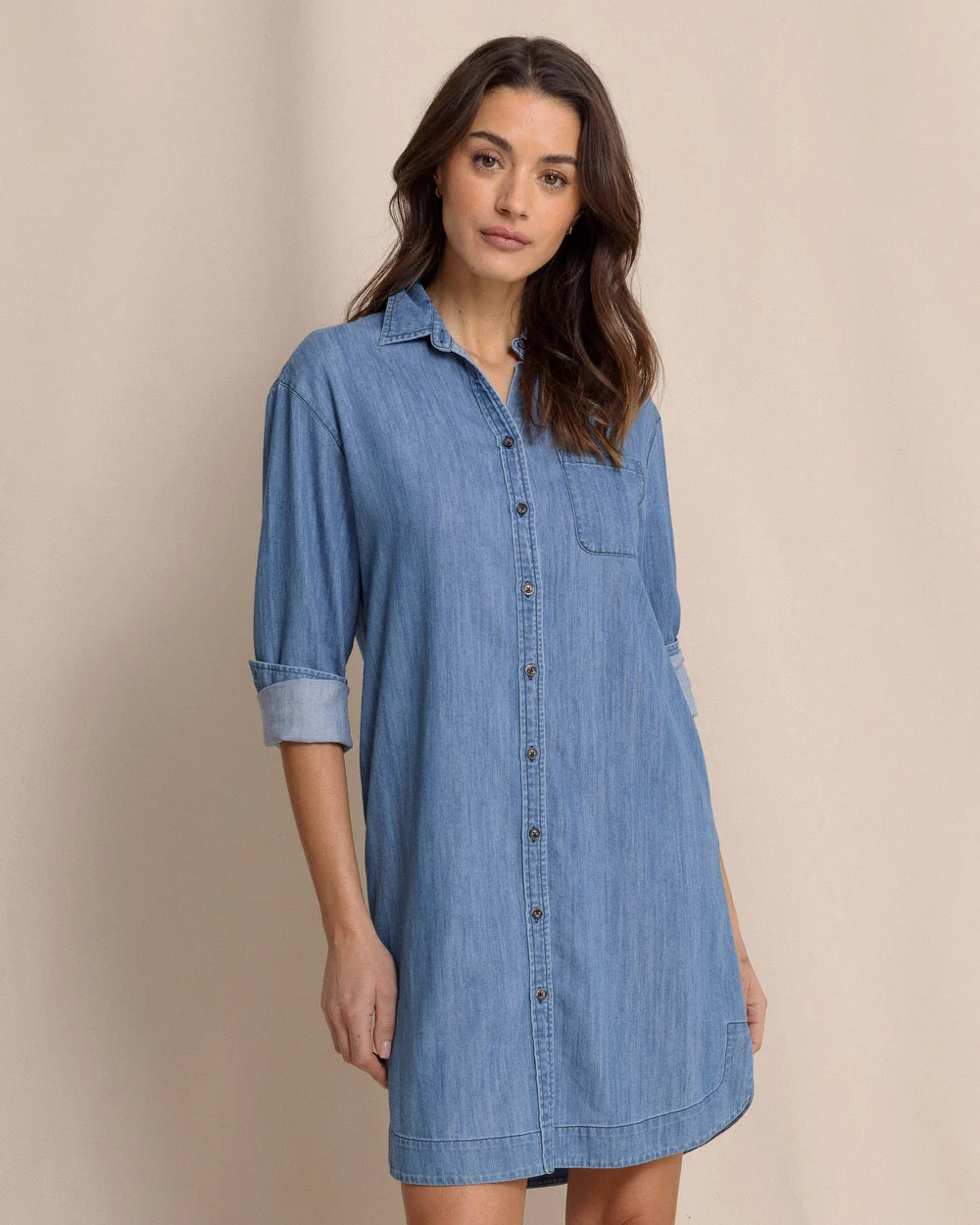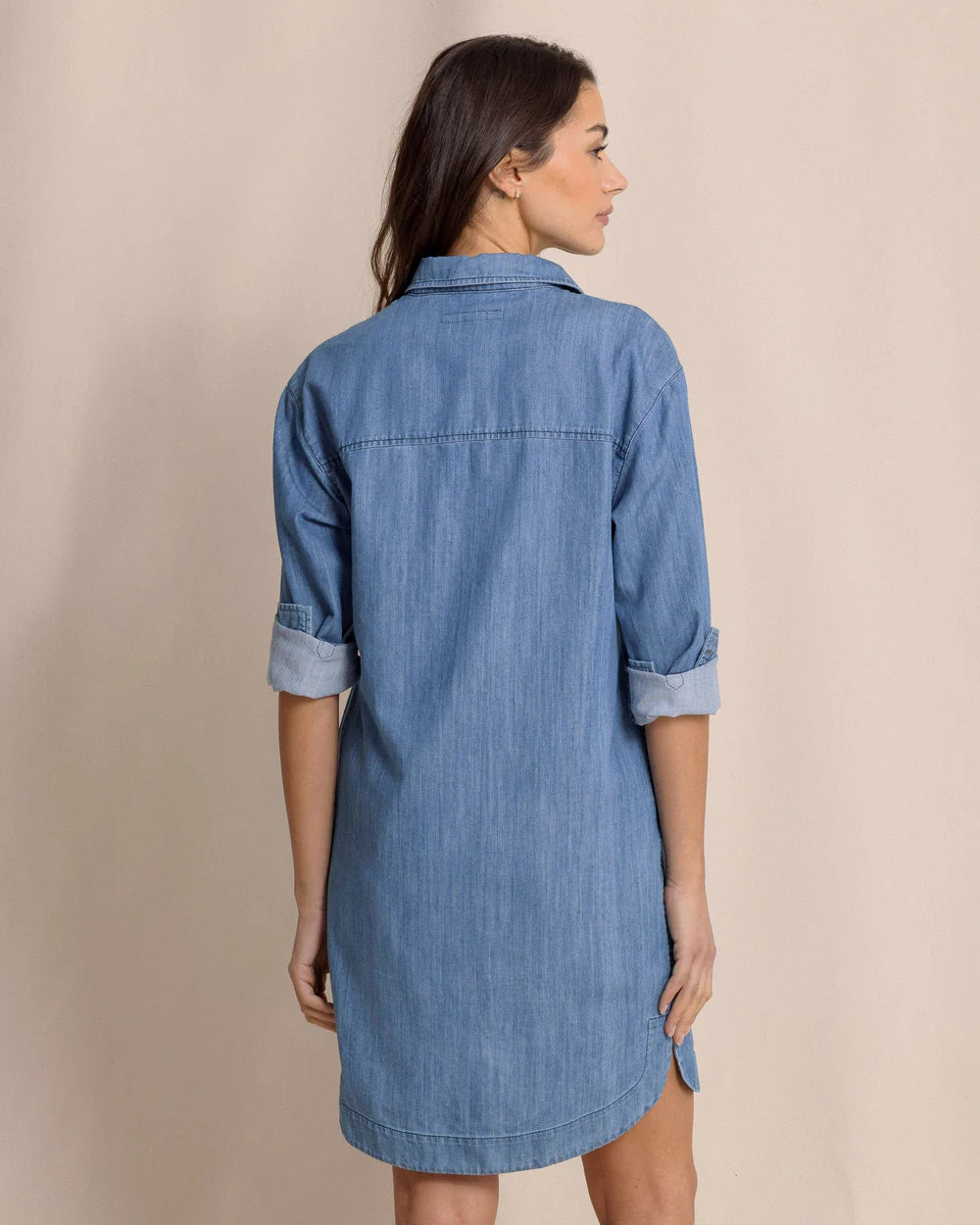 Southern Tide combined the classic comfort of a great pair of jeans with the sophisticated style of a shirt dress to give you an outfit that works from the office to play. The roll cuffs and shirt tail hem on this soft cotton dress provide opportunities to make the outfit your own.