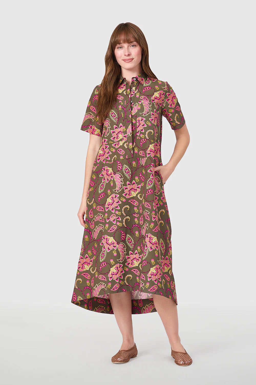 Meet the City Dress — a modern take on the classic shirtdress. Crafted from crisp cotton, this effortless silhouette features a collared neck, short sleeves, and subtle seaming that adds interest. The relaxed A-line shape and high-low hem make it perfect for easy days on the go. Polished yet unfussy, it’s your new everyday essential.