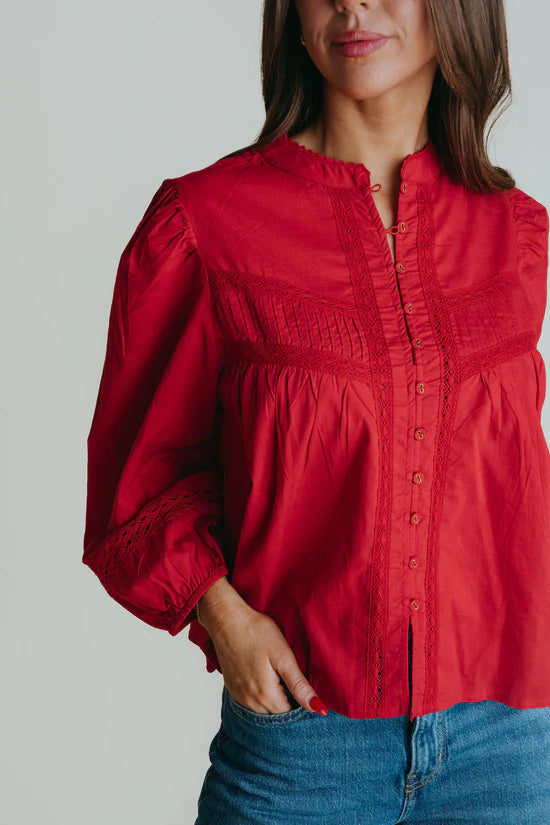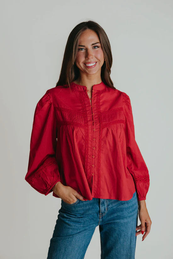 We love a good red top for fall and holiday. Great paired with denim or dress up with your favorite pants or skirt.