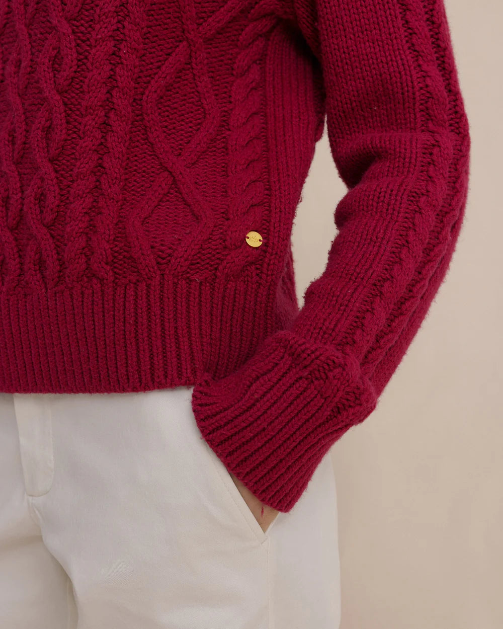 Timeless texture meets cozy comfort in the Connie Cable Knit Sweater. Crafted from 100% cotton, this classic cable knit offers breathable warmth with a soft, natural feel. Its relaxed fit and versatile silhouette make it an essential layer for crisp mornings or laid-back evenings by the shore.