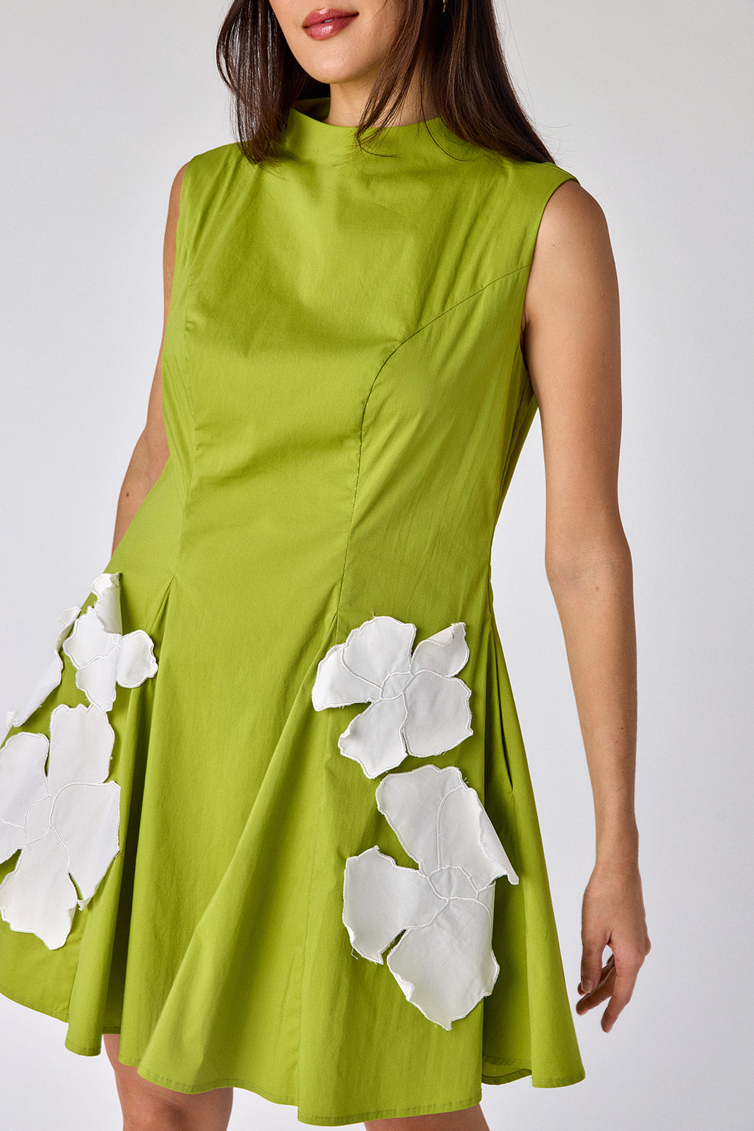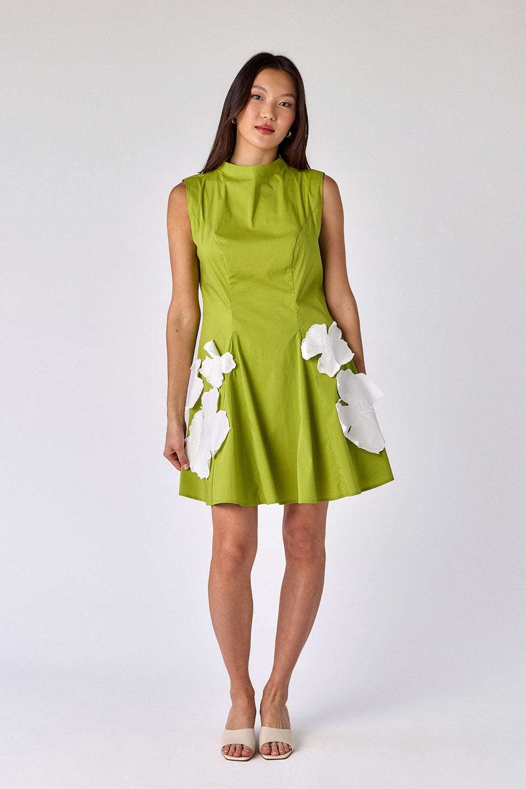 We’re obsessed with the fun and flirty vibe of our new Declan Dress! This fit-and-flare silhouette features a stylish mock-neck collar, convenient pockets, and a bra-friendly design for effortless wear. The Grasshopper colorway features delicate white flower appliques along the skirt.