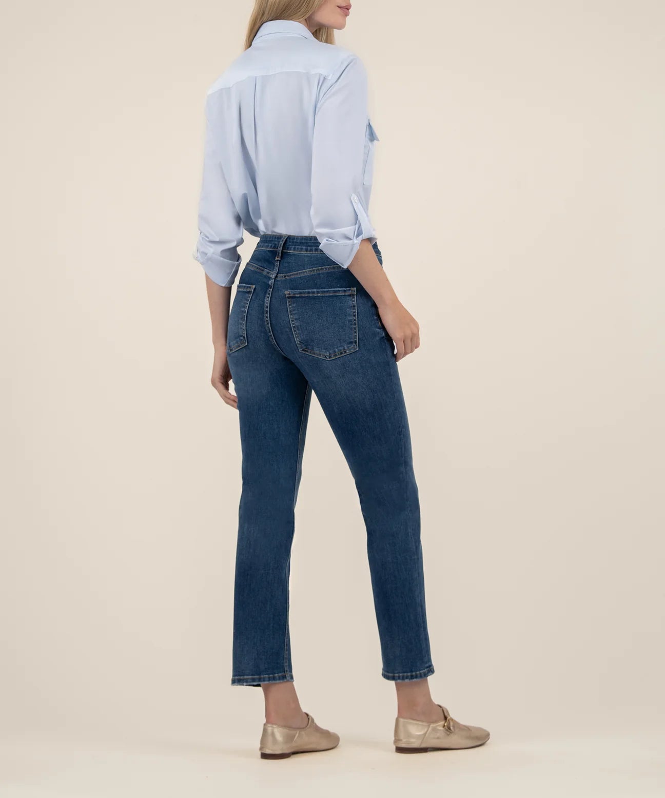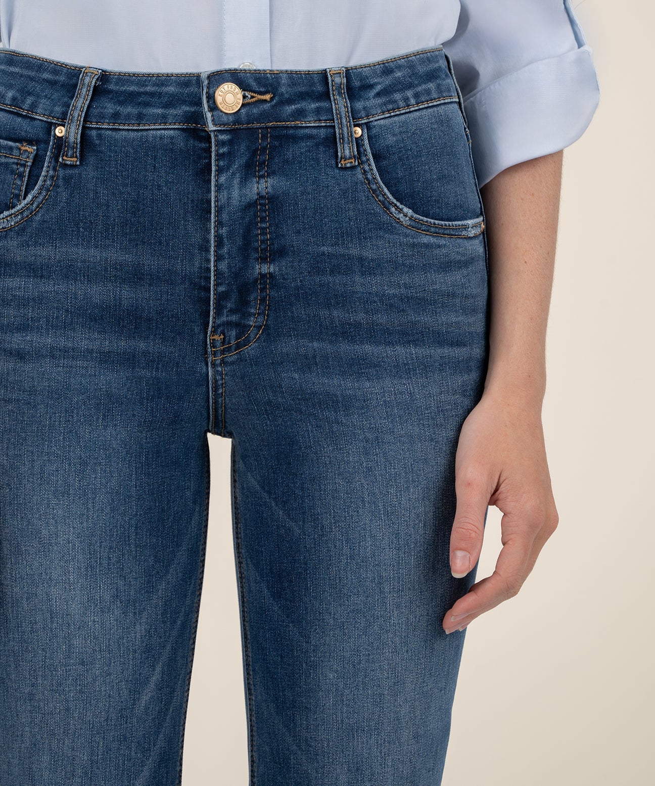 - A vintage vibe, these stretchy, slim-cut jeans flatter with a medium wash and Fab Ab front pockets that comfortably shape and smooth.