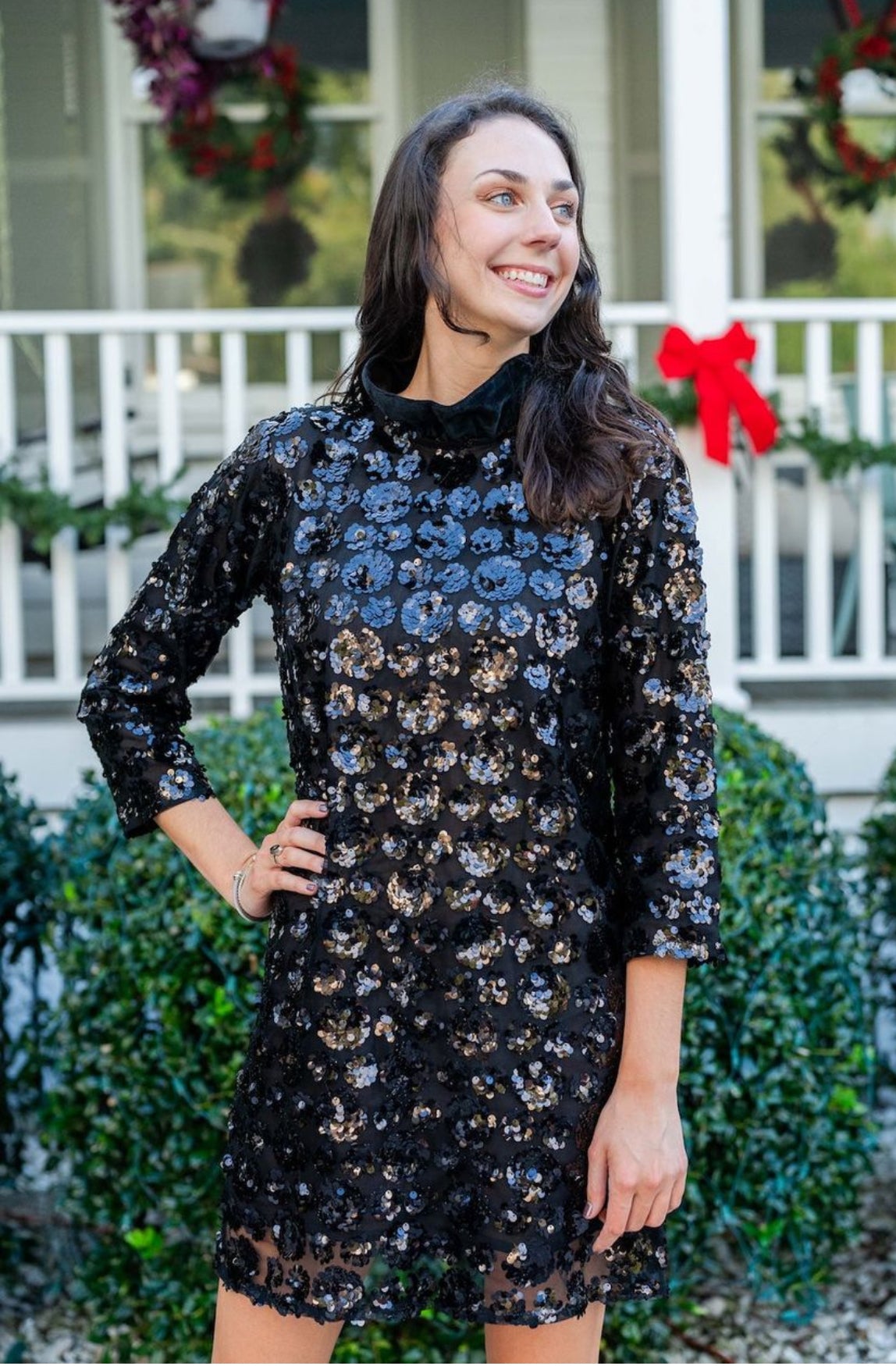 Introducing one of our Holiday must-haves, The Holly Mini. The Holly features long sleeves and a high ruffled collar that closes with a self-tie bow in the back.