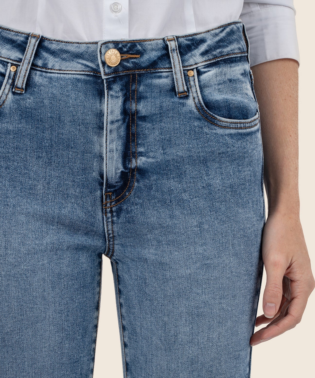 - Trouser hems add to the chic style of soft, stretchy wide-leg jeans with side hem details that make a statement in these super soft stretch jeans.