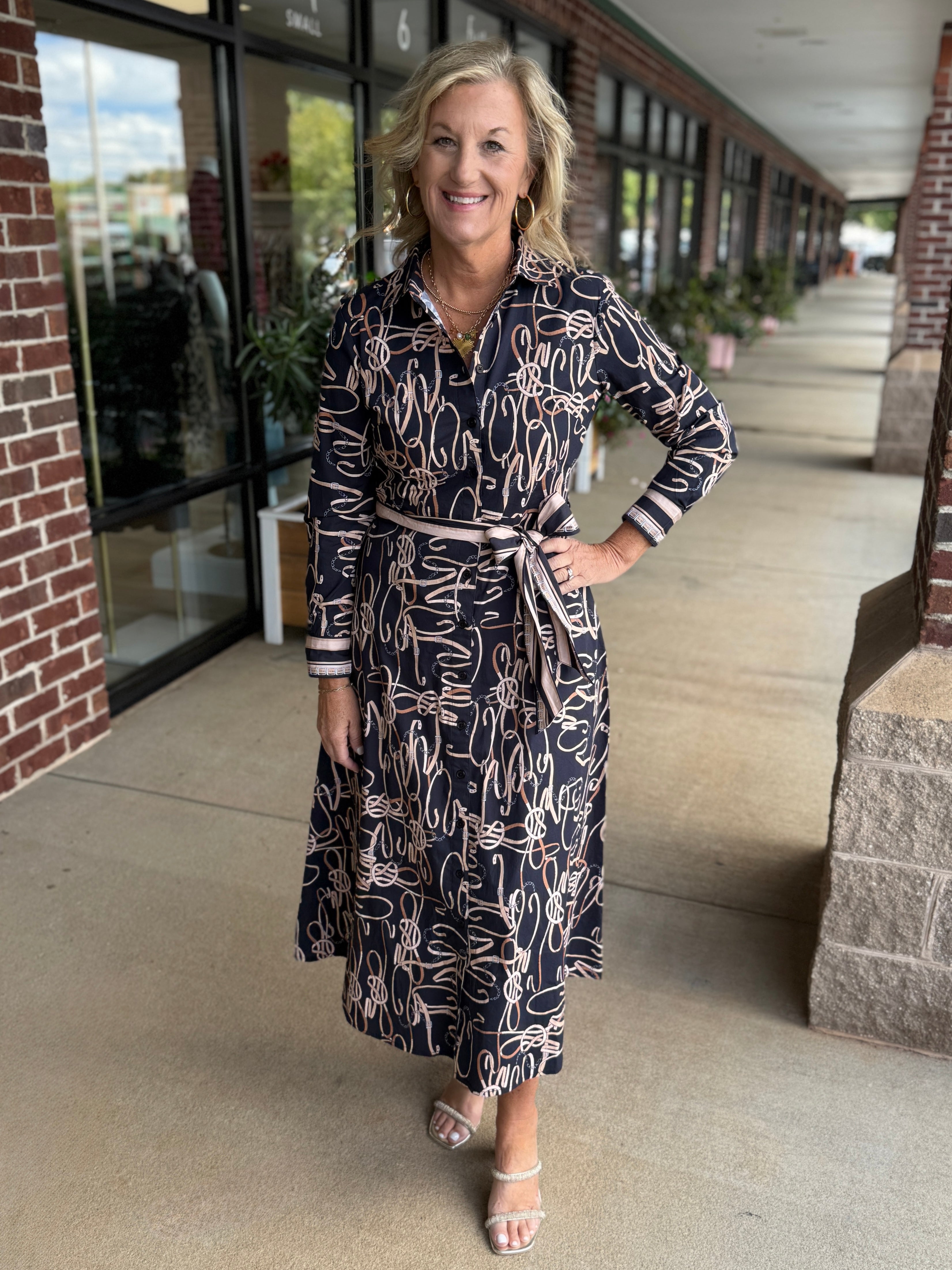 Meet your new favorite maxi dress! This fresh take on a classic shirtdress silhouette features a crisp point collar, long sleeves, and a button-front placket for a polished finish. Effortless and versatile, this dress is a timeless piece that is bound to be a fan favorite this season!