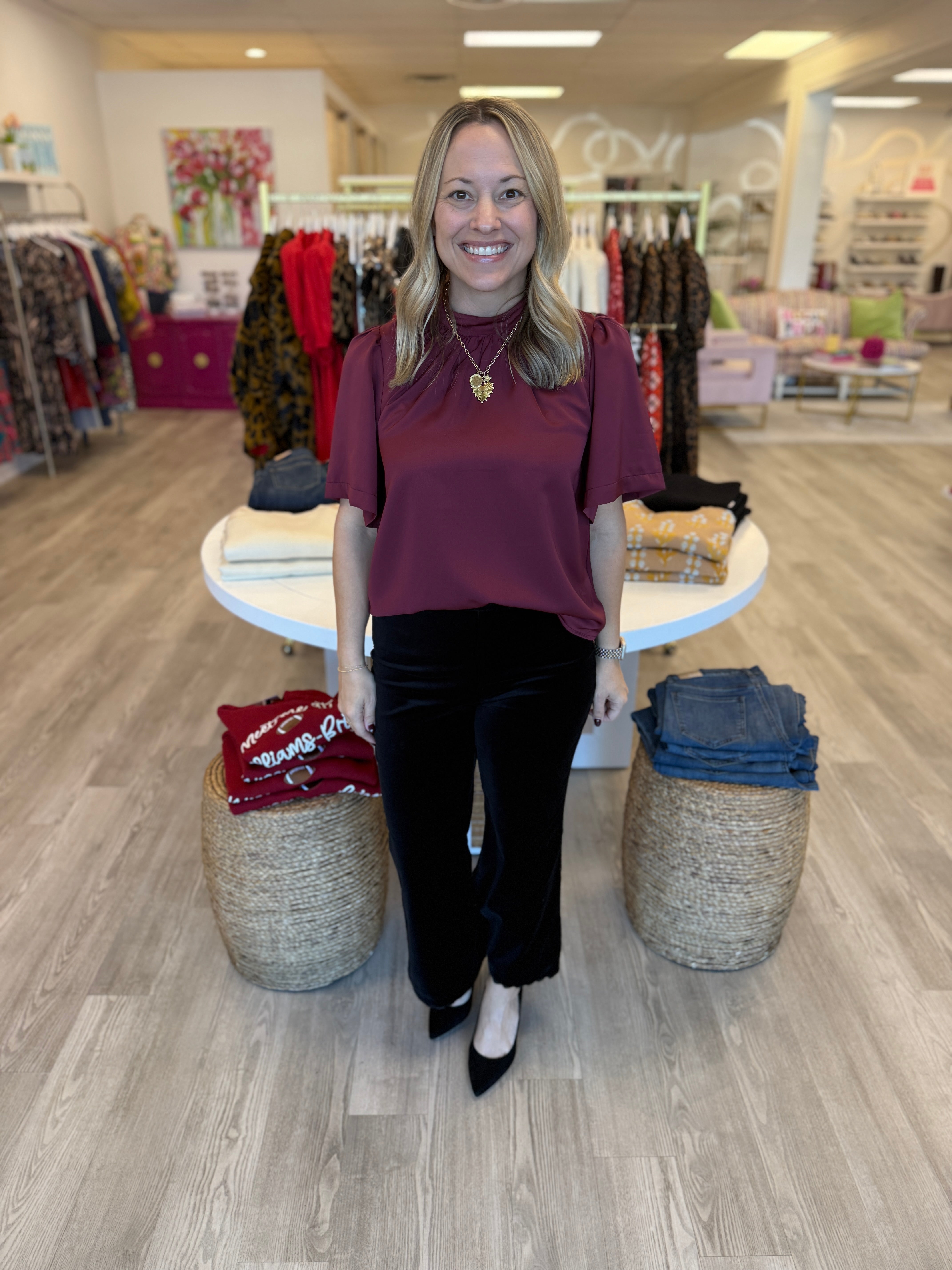 Meet Loucia, your go-to holiday top of the season. With its flowy A-line silhouette, chic mock-neck collar, and festive bell sleeves, this standout style is made for every celebration on your calendar.