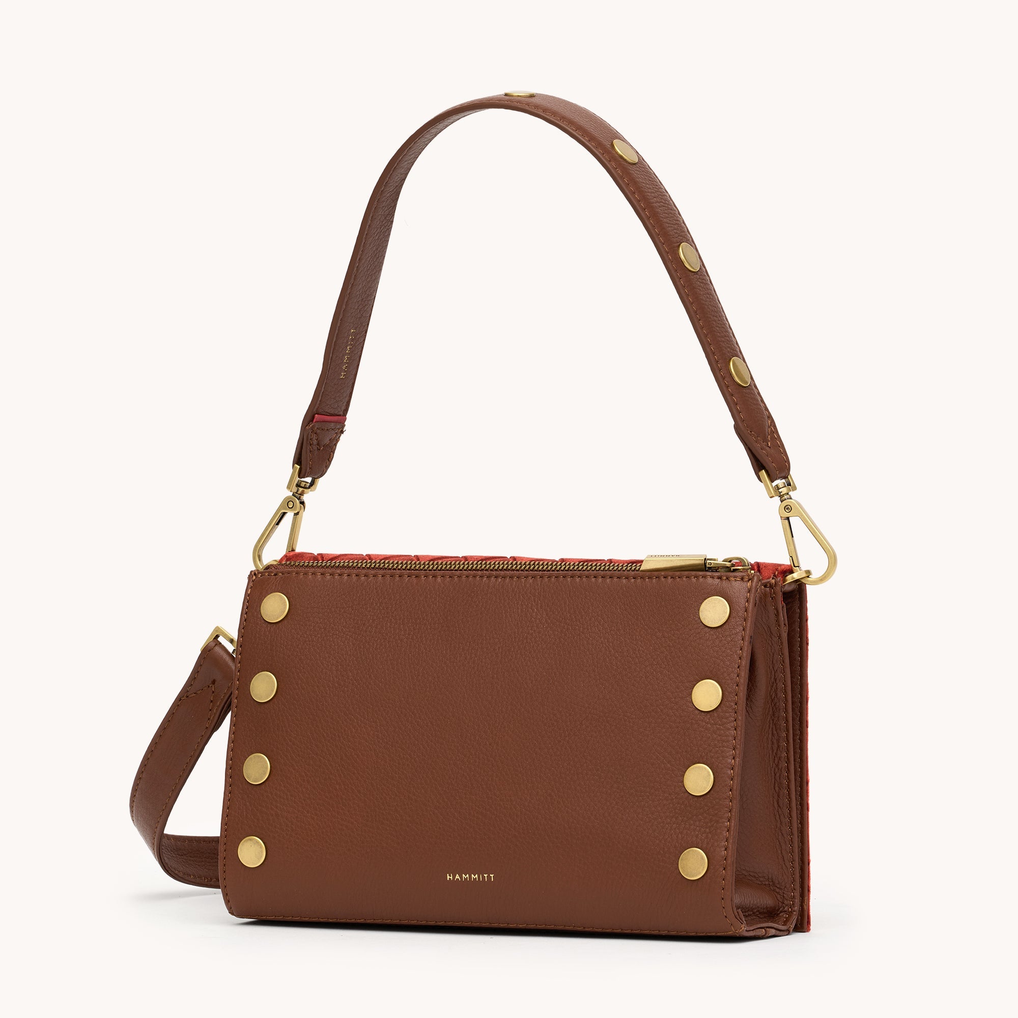 The Montana Clutch now with bold details. This clutch includes a vintage-style Hammitt strap, complete with a bonus riveted short strap, and grommets. With three compartments, this bag is functional and soon to be your everyday go-to.