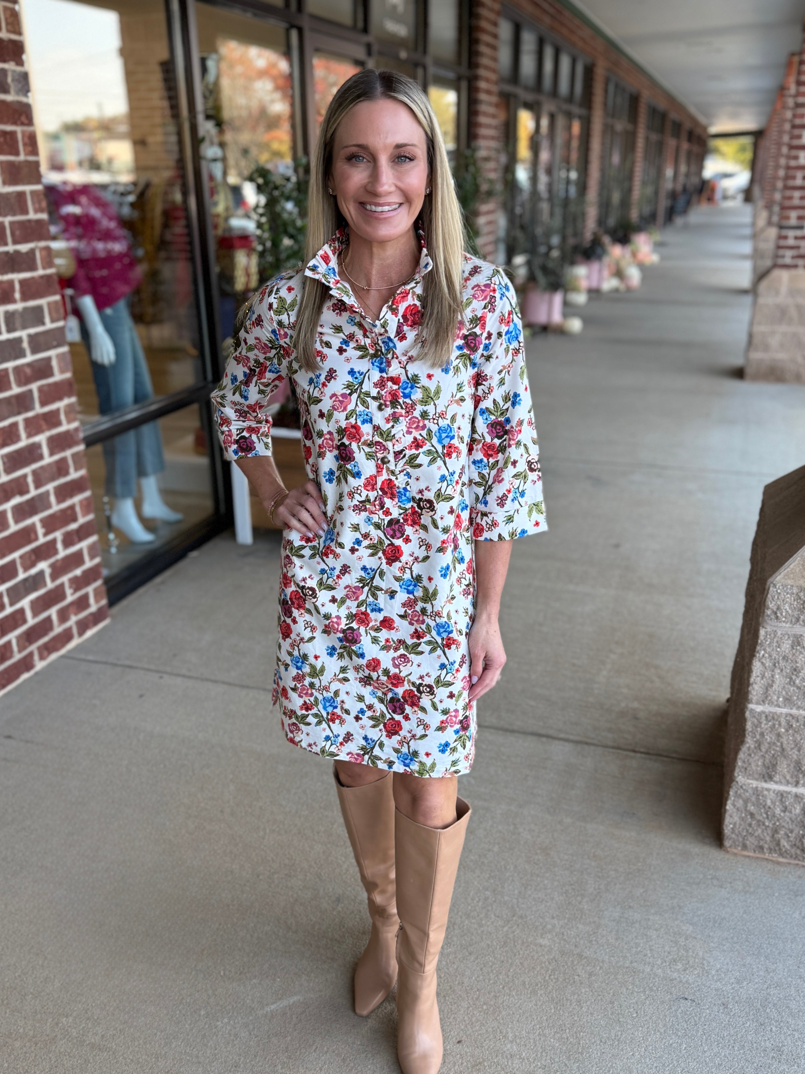A timeless silhouette meets a vibrant new print. The Olive Dress is a classic shirt dress shape reimagined in our Dawn Garden floral, designed to flatter with an easy, A-line fit and structured collar. Thoughtful tailoring and a breezy shape make it a standout style that’s as polished as it is effortless.