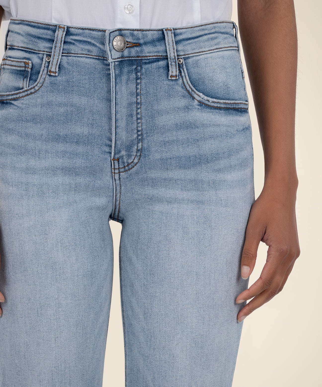 - These high-rise Fab Ab mom jeans offer a flattering fit with a light wash for a relaxed, effortless look. A perfect go-to for casual, everyday wear.