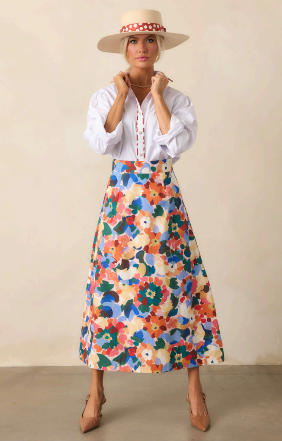 Love this skirt with an ajar sweater! It would also be so cute with a tank and denim jacket.