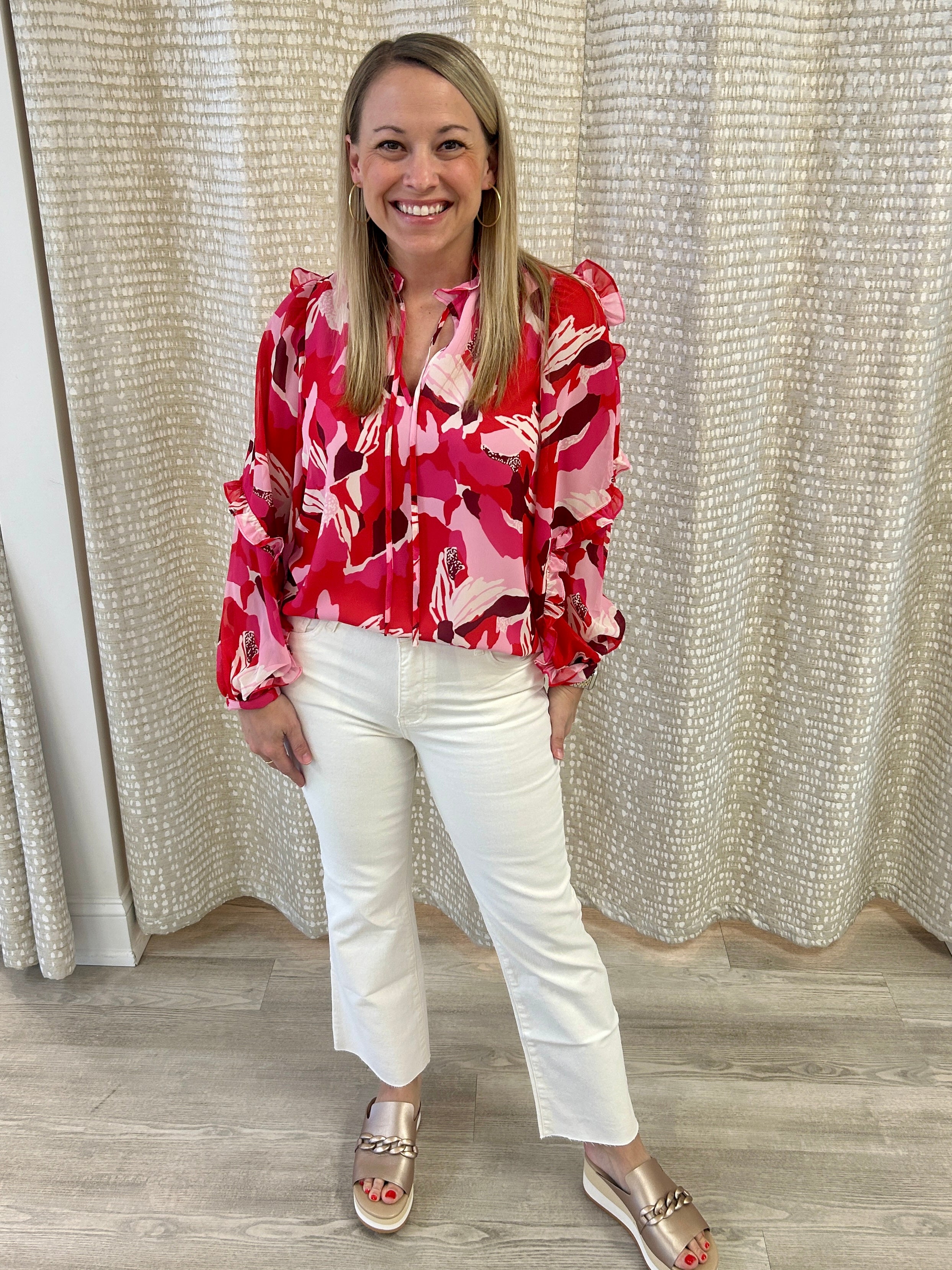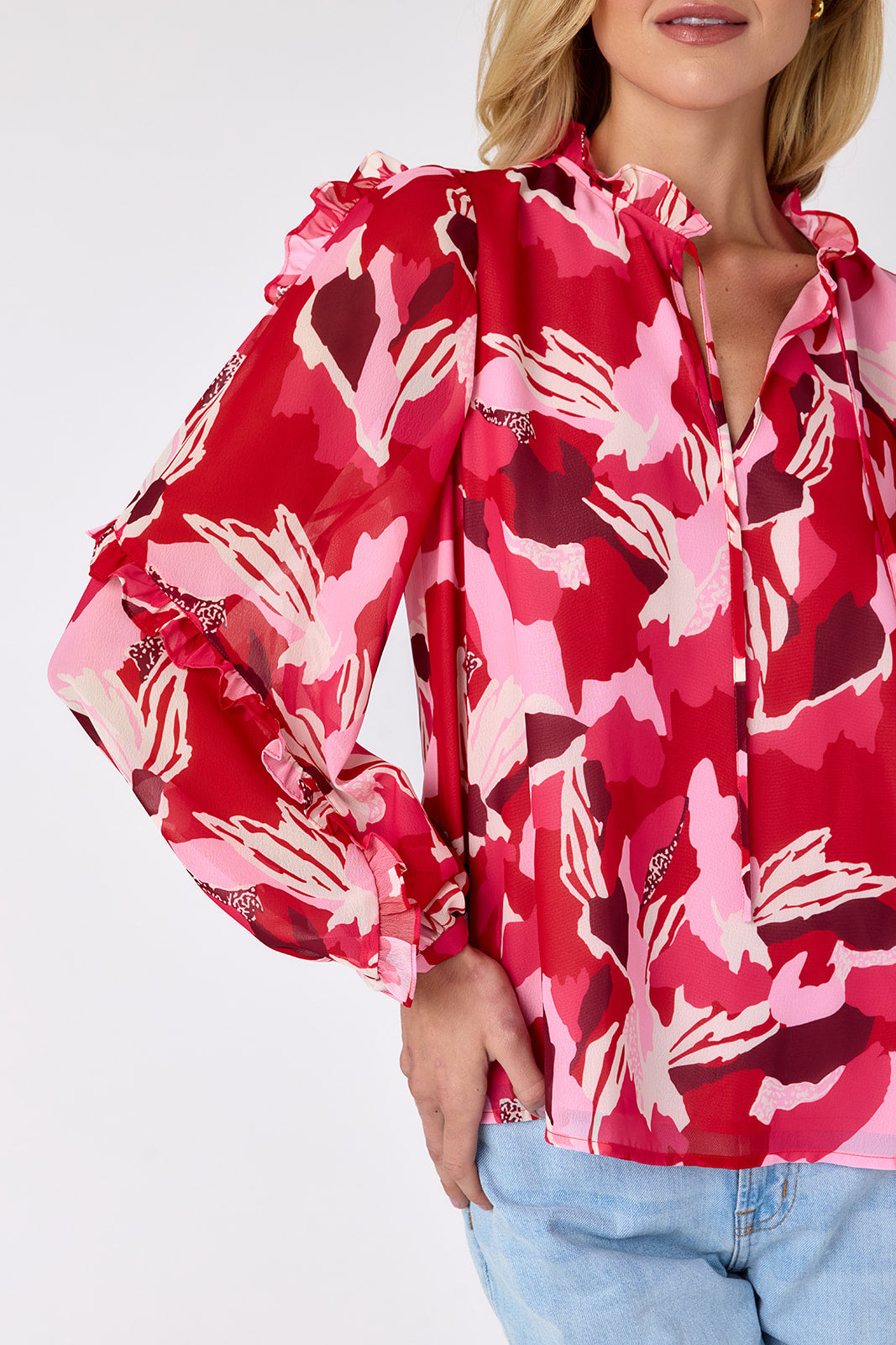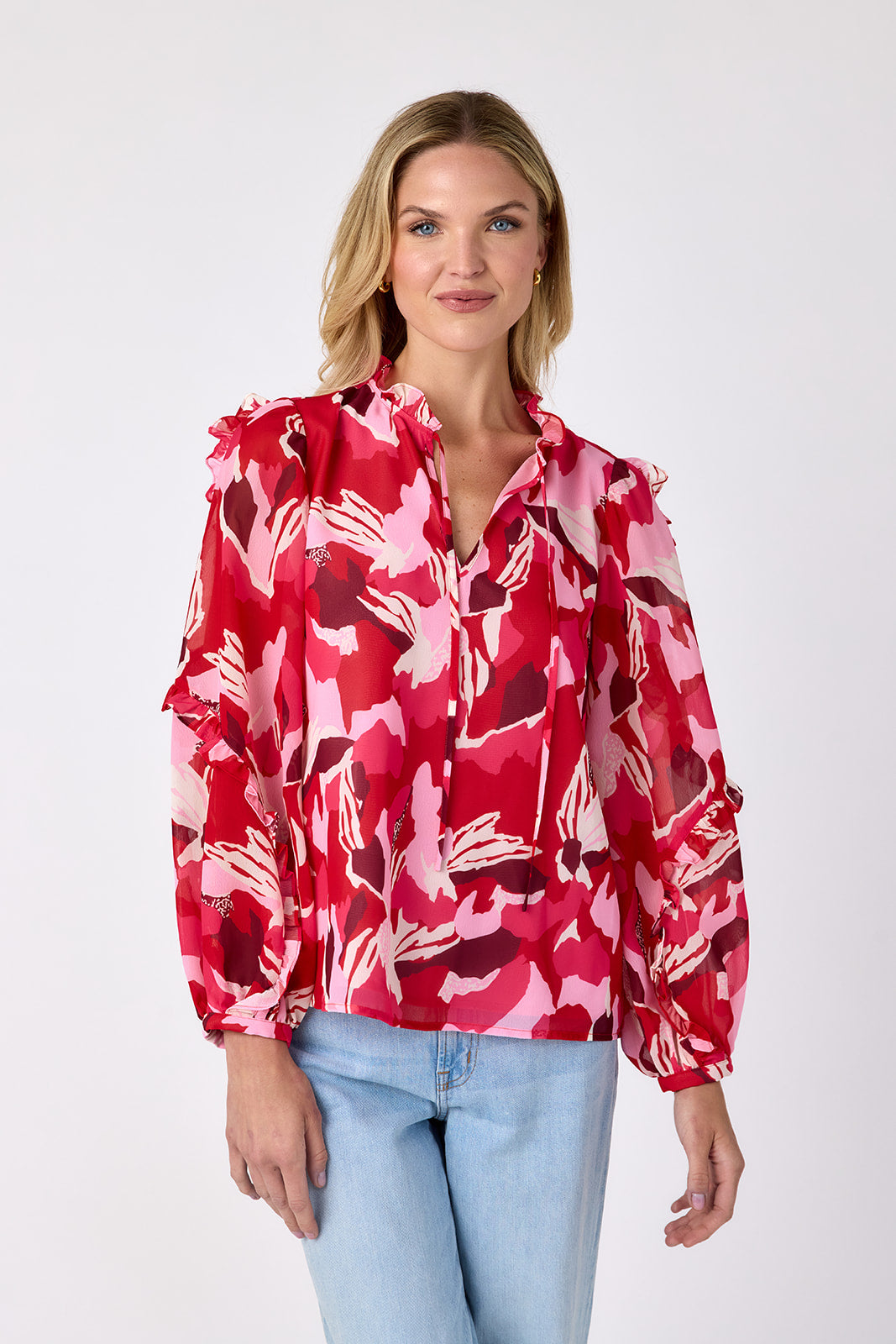 The Ryland Blouse is the perfect piece to ease you into the new season in style. With its flattering split neckline, relaxed fit, and billowy balloon sleeves, it’s effortlessly chic and endlessly versatile. We adore the ruffle detail on the sleeves, adding a fun finishing touch to this must-have blouse.