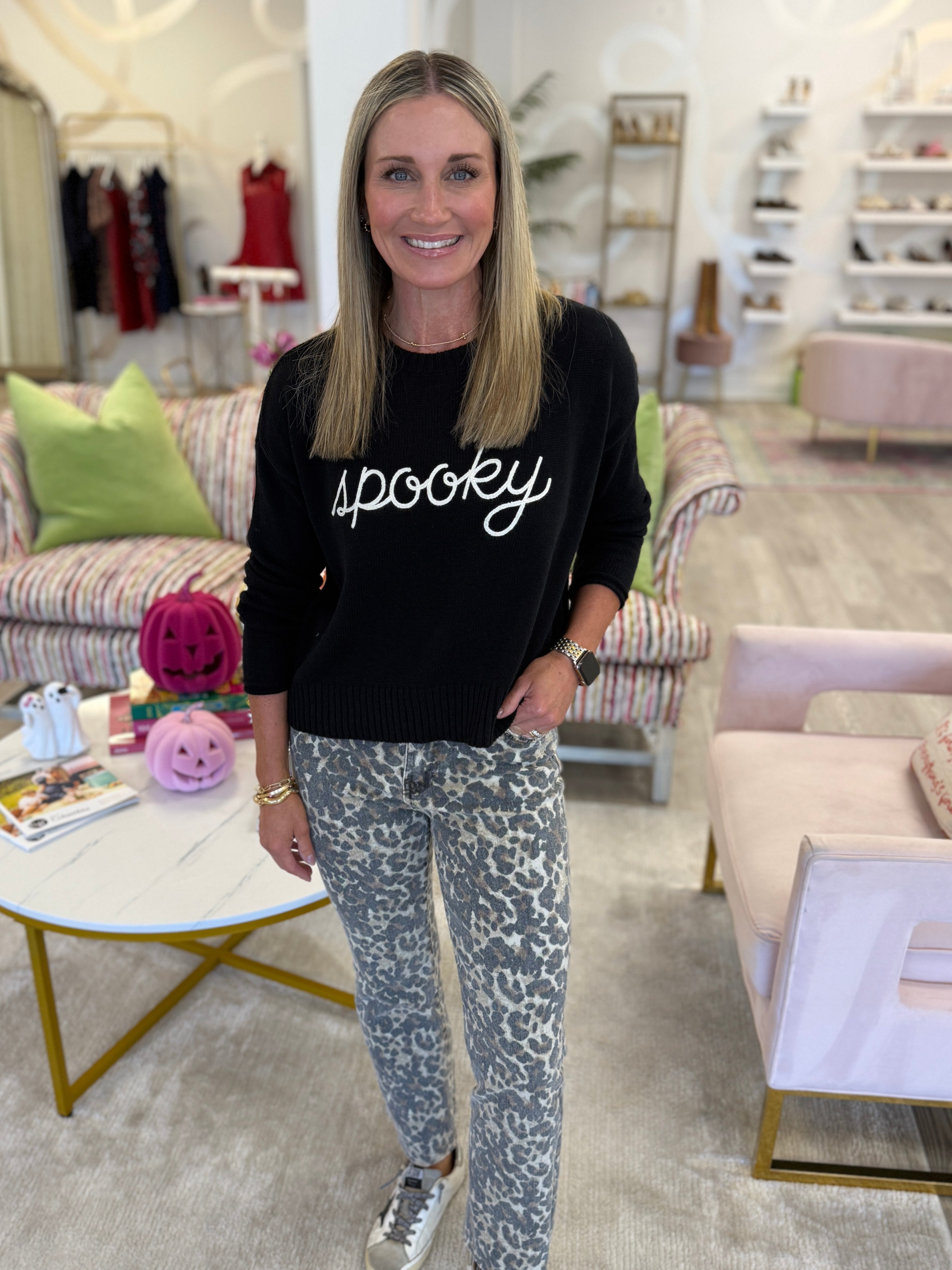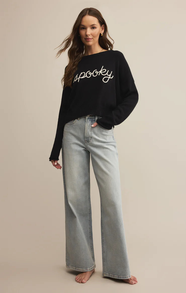 Your new go-to for casual days and cozy nights. This soft cotton crew features dropped shoulders, "spooky" embroidered lettering, and that perfectly worn-in feel you’ll reach for again and again.