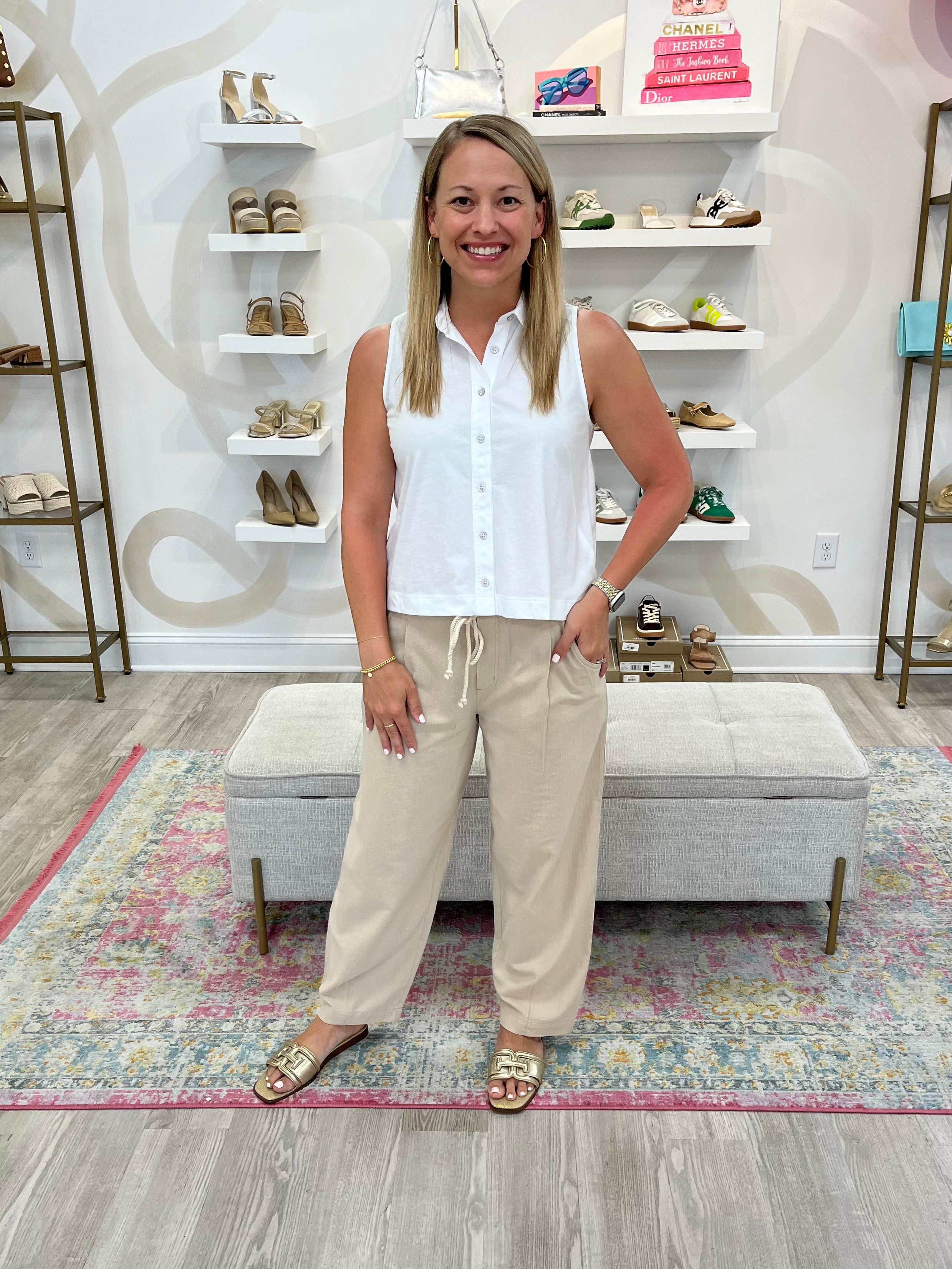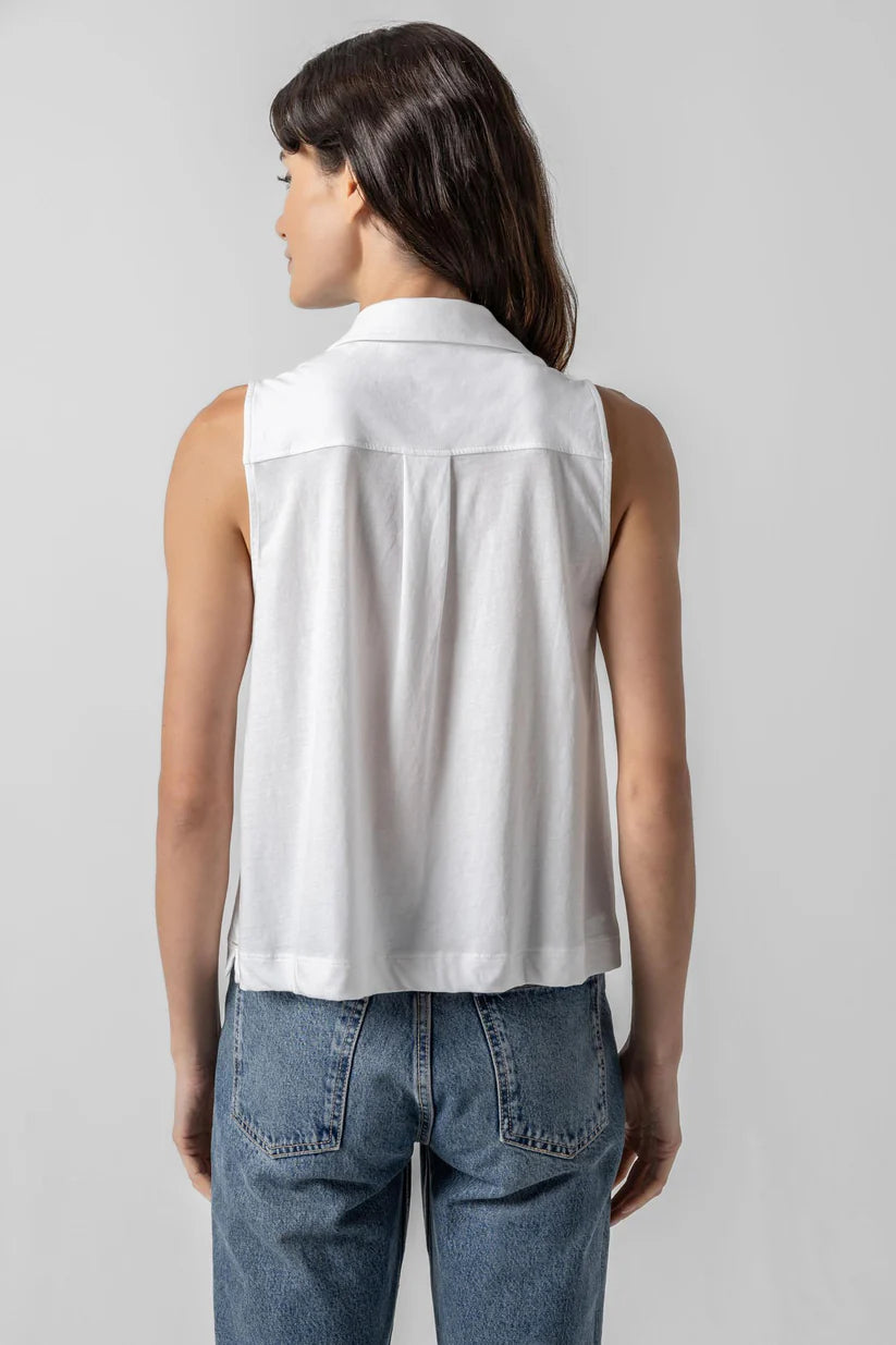 The classic button-down meets the ease of a tee! The Sleeveless Button Down in our Soft Wash Jersey fabric is a versatile staple, perfect for pairing with anything from capri pants to boyfriend jeans. Designed to skim the body, this style features darts for a flattering, shaped fit that feels both polished and effortless.