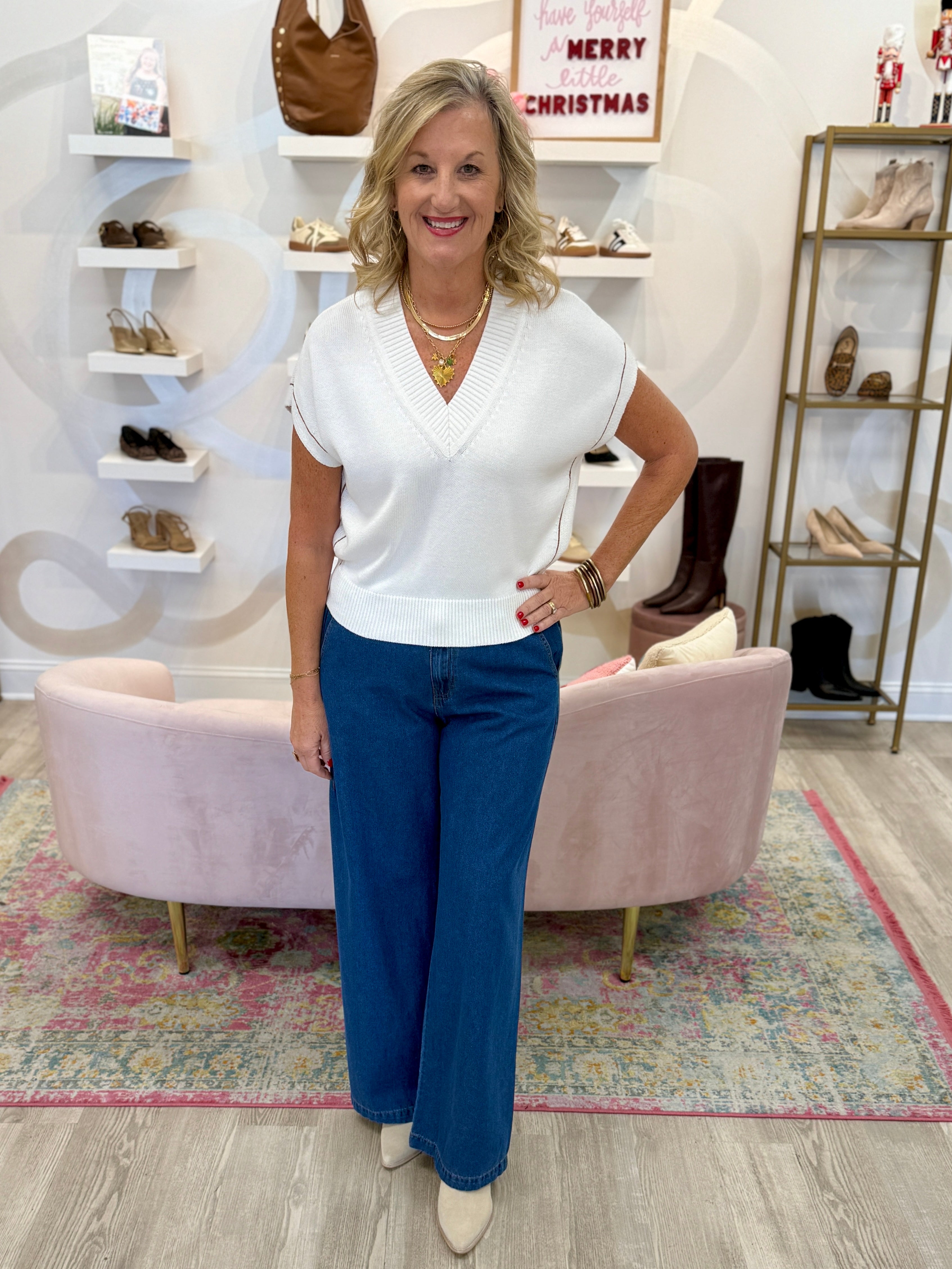 This V-Neck Wedge Sweater is a timeless shape with thoughtful detail. Knit in an eco-conscious cotton blend yarn, this style is designed with a slightly shorter length and relaxed fit through the top, making it perfect for layering over a crisp poplin shirt or wearing on its own. A contrast chain stitch detail adds just the right amount of interest, elevating this easy-to-wear style. Pair with denim, skirts, or tailored pants-this sweater does it all.