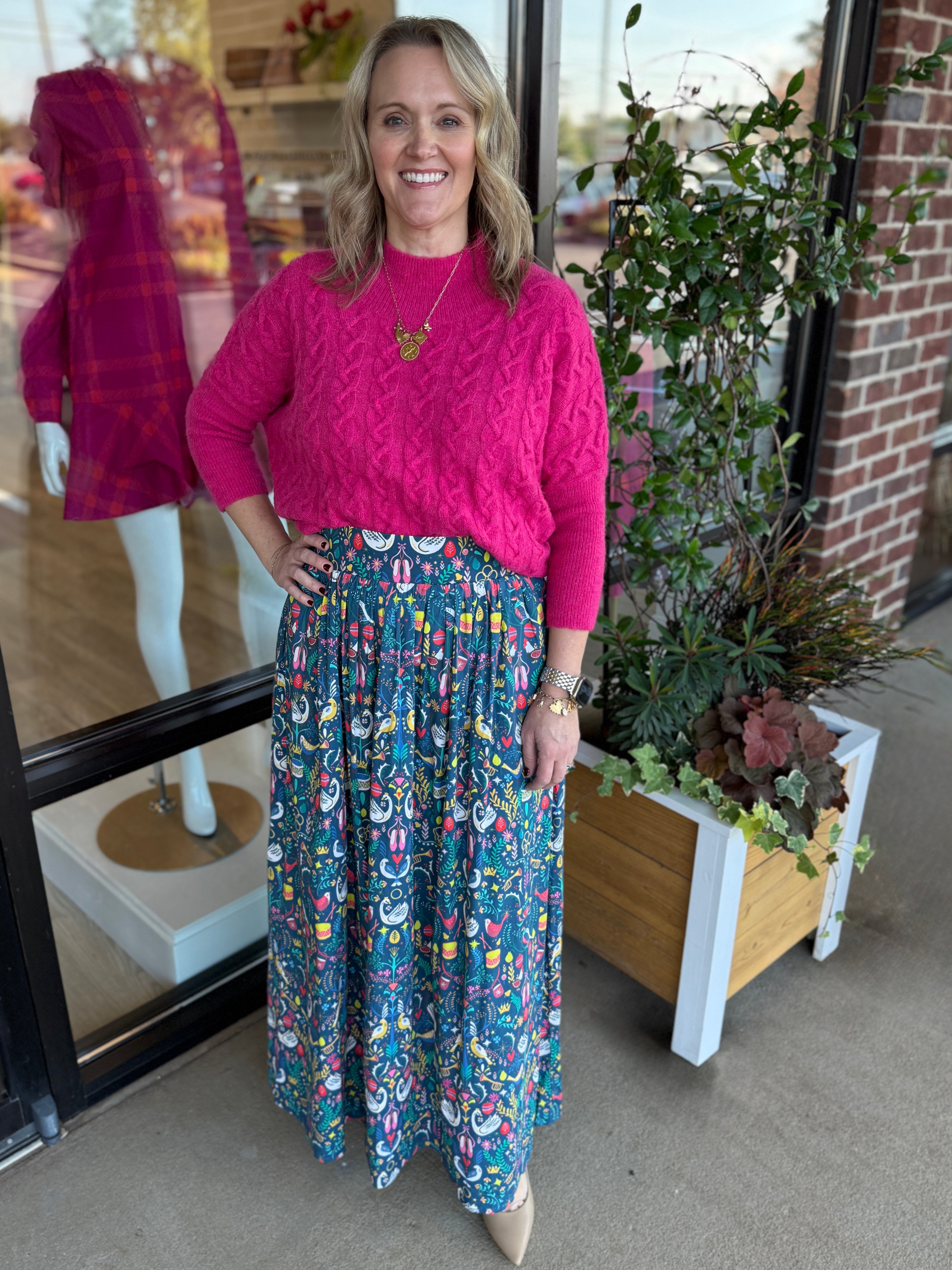 Our new Wesley Skirt is a seasonal upgrade to our popular Lillian Skirt. Long, flowy and available in two exclusive holiday prints, the Wesley pairs perfectly with anything from a crisp button down to a silk blouse for endless versatility.